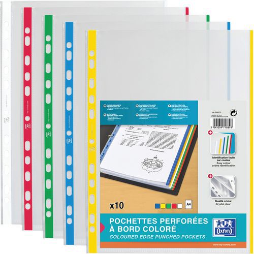 Geperforeerde hoes met gekleurde rand Oxford - Zak van 10 Geperforeerde hoes met gekleurde rand Oxford - Zak van 10