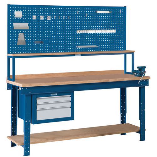 Geperforeerde plaat en legbordsteun voor werkbank, Breedte: 2000 mm, Hoogte: 700 mm, Kleur: Blauw, RAL: 5009