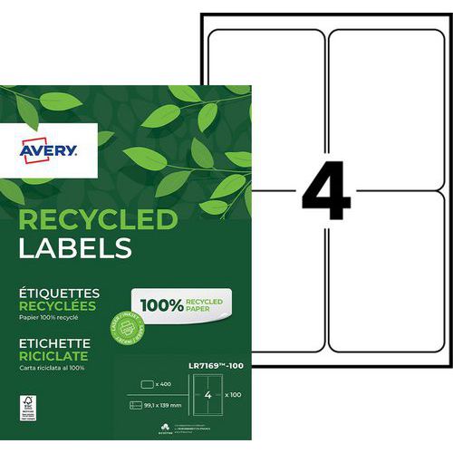 Productnaam Gerecycled etiket Avery, Aantal etiketten/vel: 4, Aantal etiketten: 400, Lengte etiket: 139 mm