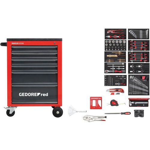 | Productnaam | Gereedschapset in gereedschapwagen MECHANIC 166-delig, Max. belasting per lade: 25 kg, Totale hoogte: 910 mm |