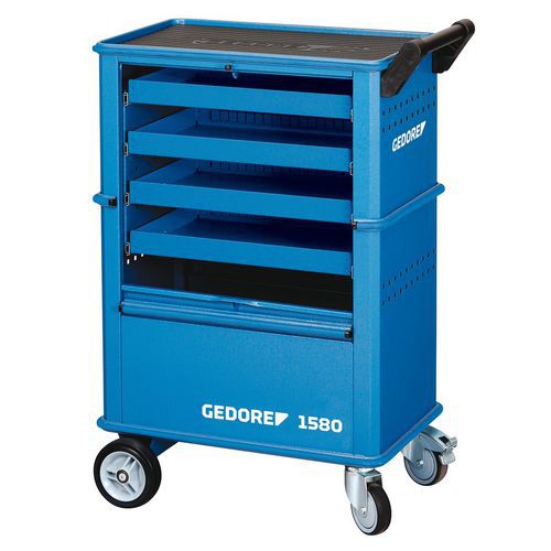 | Productnaam | Gereedschapswagen met 4 laden 1580, Max. belasting per lade: 20 kg, Totale hoogte: 930 mm, Aantal laden: 4 |