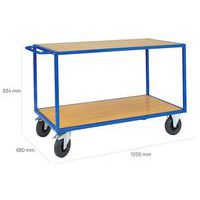 | Productnaam | Gereedschapswagen met houten plateaus, Max. belasting: 500 kg, Totale hoogte: 934 mm, Totale breedte: 680 mm |