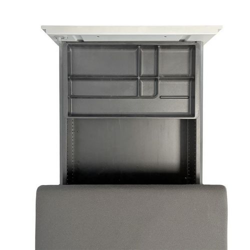 Uitgerust met verborgen wielen voor optimale mobiliteit, en perfect aanpasbaar voor alle professionele ruimtes.