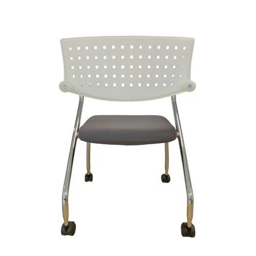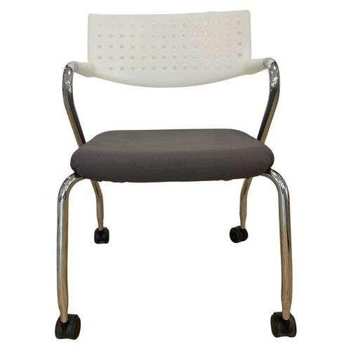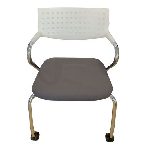 Vergaderstoel met wielen refurbished - grijs-wit - stof en metaal