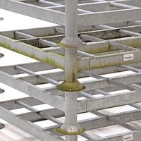 - Stapelrack mobiel voor rongen refurbished, ontworpen voor een europallet 1200 x 800 mm.