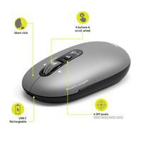 - Platte oplaadbare muis met Bluetooth, gebruiksvriendelijk en praktisch.