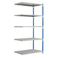 Stevige stelling met dichte legborden van plaatstaal voor voorwerpen in bulk. Eenvoudige montage met directe vergrendeling van de plateaus op de staanders. Zonder kruisschoor en rug aan rug geïnstalleerd: voor dubbelzijdig gebruik. Legbord op elk moment te monteren of demonteren zonder het geheel uit balans te brengen. Perfect voor producten in bulk!