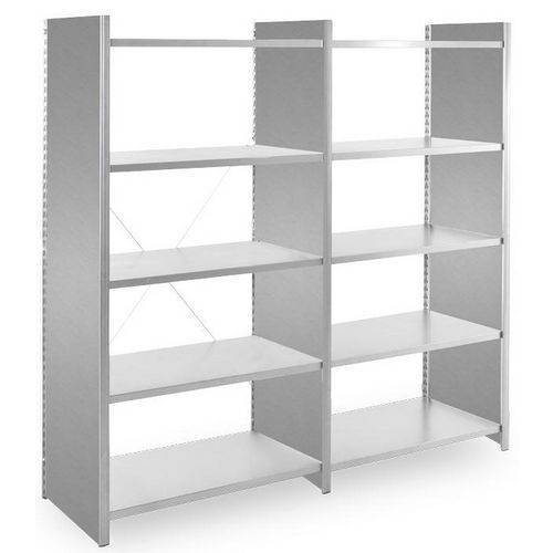 Lichte en robuuste kantoorstelling. Gegalvaniseerde afwerking. Gesloten constructie aan de zijkanten met gesloten jukken. Roestvrij, geschikt voor vochtige omgevingen. Uit te breiden met een of meer aanbouwstukken. Gegalvaniseerde afwerking, ideaal voor vochtige ruimtes of voor buiten.