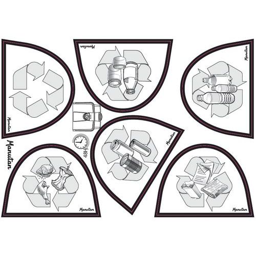 Geleverd met een set van 6 stickers voor afvalscheiding.