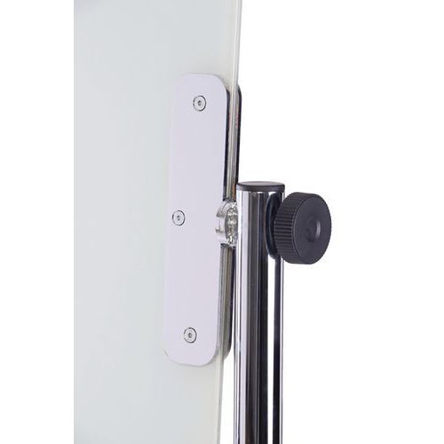 Glazen oppervlak met magnetische eigenschappen. Horizontaal kantelbaar. Bord met 4 wielen met rem.