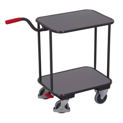 Wiel van thermoplastisch rubber op kunststof velg met precisie kogellager, grijs, streeploos, diameter 125 mm, 2 zwenkwielen met centrale EasySTOP rem en 2 bokwielen met voetbeschermer