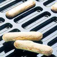 - Ontwerp van open, gevlochten glasvezelstructuur geïmpregneerd met siliconen, voor het bakken van soesjesdeeg en bleek gebakken bodems van taartjes.