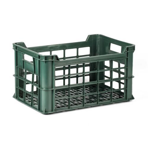 Kist geschikt voor de opslag van groenten en fruit. Geperforeerd zodat er lucht bij de voedingsmiddelen kan komen en ongewenste vloeistoffen afgevoerd kunnen worden. Vervaardigd van regranulaat, maximaal toegestane draagvermogen is 15 kg. Bestand tegen oliën, harsen en alkali.