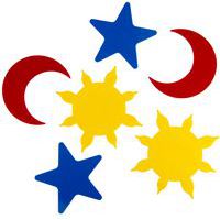 - Maak educatieve parcoursen met deze ster-, zon- en maanvormige markeringen.