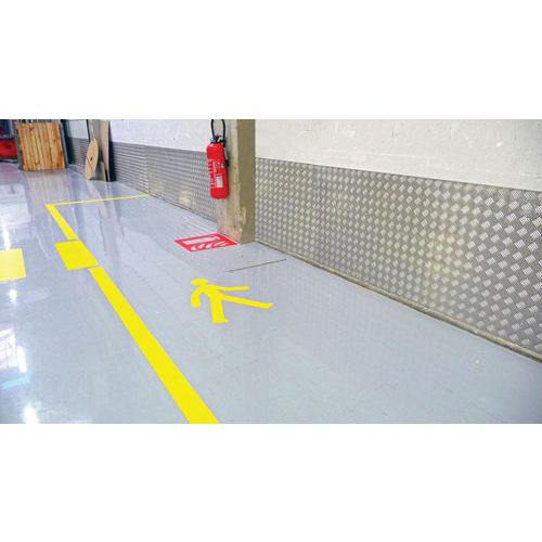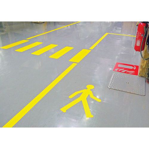 Grondmarkeringstape van pvc, Materiaal: PVC, Breedte: 478 mm, Lengte: 735 mm, Kleur: Geel, Model: Poppetjes
