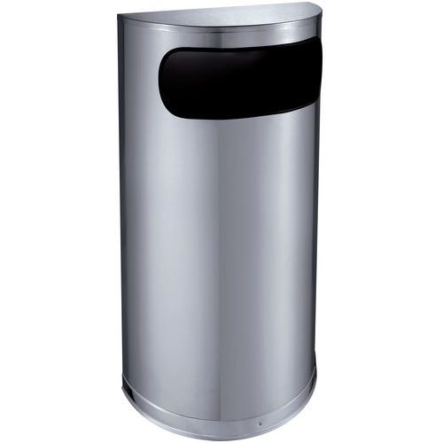 | Productnaam | Halfronde afvalbak met zijopening, Totale inhoud: 35 L, Opening: Gleuf, Materiaal: Roestvrij staal |
