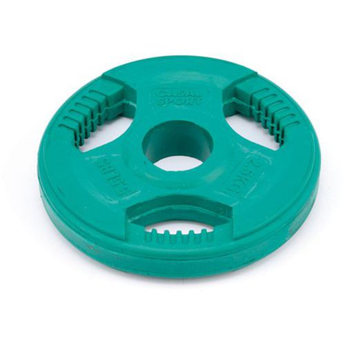 Halterschijf met gekleurde rubberen coating. Doorsnede 51 mm. Bestand tegen krassen en schokken. Gewichtsaanduiding in kg op de schijf. Verkrijgbaar in verschillende gewichten.