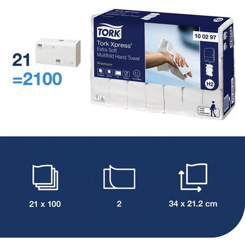 Extra zachte handdoek: biedt comfort en voelt aangenaam aan. QuickDry-kwaliteit: steviger en beter absorberend dan normaal papier. Geeft één vel per keer af voor een zuinig gebruik en betere hygiëne. Veilig voor kortdurend contact met voedingsmiddelen, Gewafelde papieren handdoek met motief. Voor het hygiënisch drogen van de handen in veeleisende omgevingen op het gebied van comfort en hygiëne