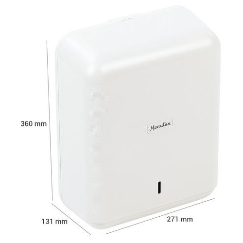 | Productnaam | Handdoekdispenser, Kleur: Wit, Hoogte: 360 mm, Breedte: 271 mm, Diepte: 131 mm |