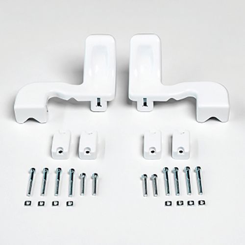 Samenstelling: - 1 set van 2 handgrepen Stop Virus - 2 stickers met uitleg voor de gebruikers (op de deur te plakken) - 12 bevestigingsschroeven (6 per handgreep) - 1 binnenzeskantsleutel - 1 montage-instructie