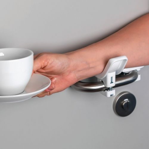 Ergonomisch en hygiënisch deuropeningssysteem via de onderarm of de elleboog.