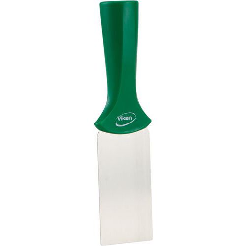 Dit product kan ook worden gebruikt om licht vervuilde vloeren te reinigen Zeer sterke montage en handgreep met schroefdraad, compatibel met alle Vikan handgrepen met kleurcodering Krabber met flexibel roestvrijstalen blad en afgeronde beschermranden Ideaal voor het verwijderen van moeilijk bereikbare kleverige aanslag en opgedroogd of aangebrand voedsel of ingrediënten