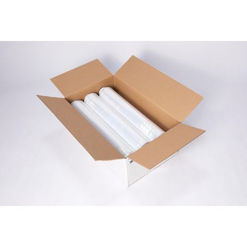 Handmatig voorgerekte, gerecyclede rekfolie, Dikte: 6 µm, Lengte: 600 m, Breedte: 430 mm, Kleur: Transparant