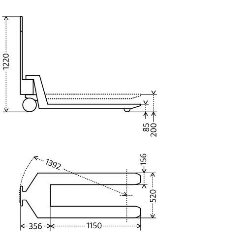 | Productnaam | Handmatige palletwagen Silence, Max. belasting: 2300 kg, Lengte vork: 1150 mm, Type vorkwiel: Dubbel |