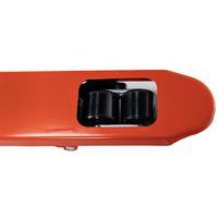 Versmalde uiteinden van de vorken en voorzien van dubbele vorkwielen om zich eenvoudiger aan onregelmatig terrein aan te passen.