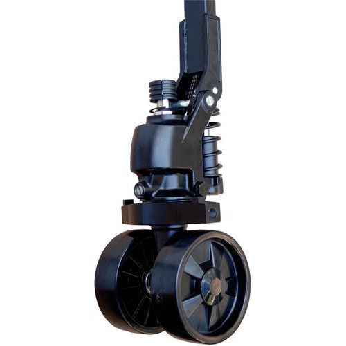 Vorkwielen in 2 uitvoeringen: enkel of dubbel wiel van polyurethaan.