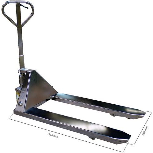 | Productnaam | Handpalletwagen van topkwaliteit in rvs 2.5 T vorken 1150 x 680 mm |