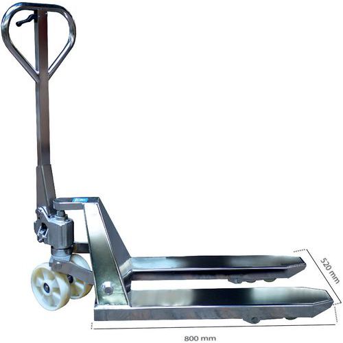 | Productnaam | Handpalletwagen van topkwaliteit in rvs 2.5T vorken 800 x 520 mm |