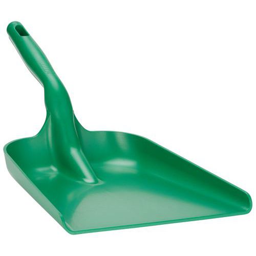 De vlakke Vikan Hygiene handschep met rechte steel is geschikt voor elke situatie waarin een handschep gemakkelijker is dan een schop met lange steel. De handschep is gemaakt uit één stuk, waardoor bacteriën minder kans krijgen en de schep makkelijker schoon te maken is. Dankzij het kleine blad en het lage gewicht ligt de handschep prettig in de hand wanneer je ingrediënten of vuil opschept.