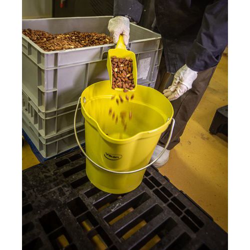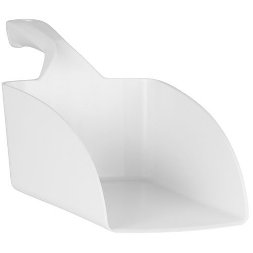Deze ergonomische handschep is licht en duurzaam en kan worden gedetecteerd door metaaldetectors. Het ontwerp uit één stuk voorkomt bacteriële besmetting en het gladde oppervlak maakt het reinigen eenvoudiger. Door de grote inhoud van 2 liter kun je grote hoeveelheden droge of vochtige ingrediënten (o.a. meel, bloem, zout, suiker, korrels) tegelijk scheppen. De Vikan-testkit wordt gebruikt om de detecteerbaarheid van het product te testen. Gemaakt in de EU