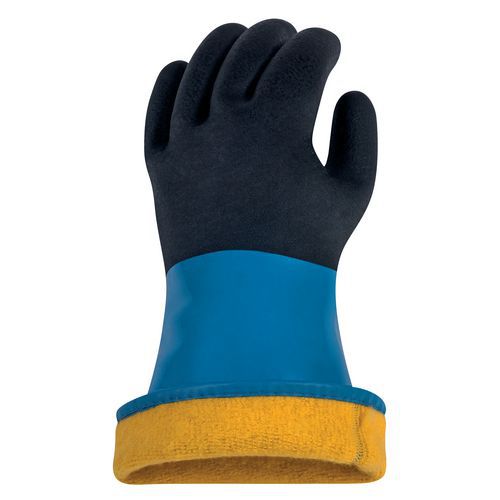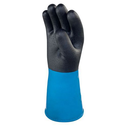 - Dubbele PVC/nitrilcoating op acryldrager jauge 10 met daarbovenop nog een derde, ruwe PVC/nitrilcoating op de hand.