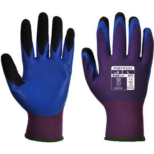De Duo-Flex combineert een aantal dip-technieken waardoor deze handschoen op cruciale plaatsen dubbel gedipt is.