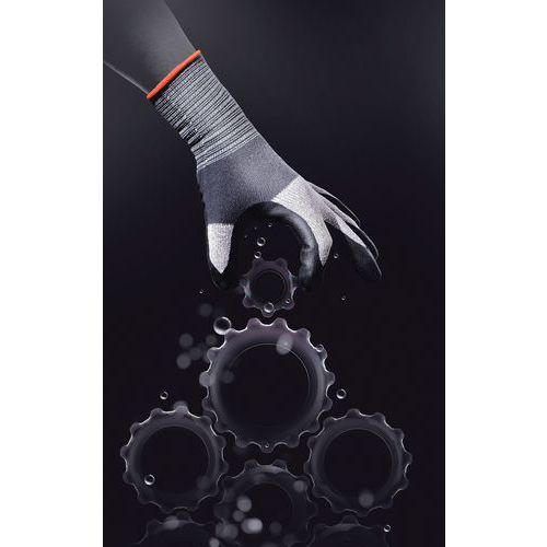 - Reliëfafwerking op de microporeuze nitrilhandpalmcoating