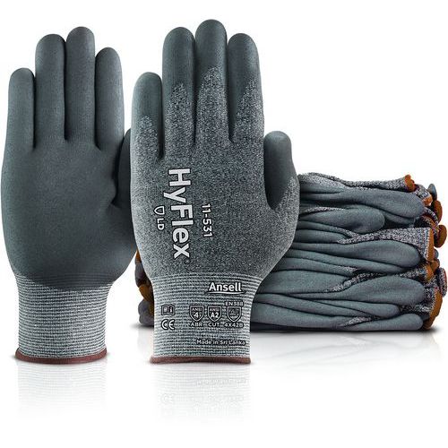 - De lichte voering van HyFlex® 11-531 industriële veiligheidshandschoenen biedt flexibele en handelbare handbescherming.