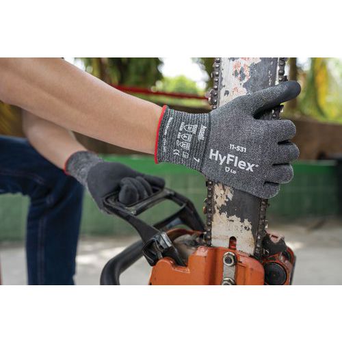 - De lichte voering van HyFlex® 11-531 industriële veiligheidshandschoenen biedt flexibele en handelbare handbescherming.