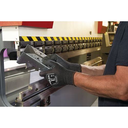 Gebreide handschoen zonder naden voor maximaal comfort, een goede behendigheid en soepelheid, met een hoge bescherming tegen snijden (niveau E). Ademend, soepel en aangetoond duurzame coating. Makkelijk identificeerbaar snijniveau dankzij de markering op de bovenzijde van de handschoen. Geschikt voor touchscreens en apparaten met aanraakbediening.