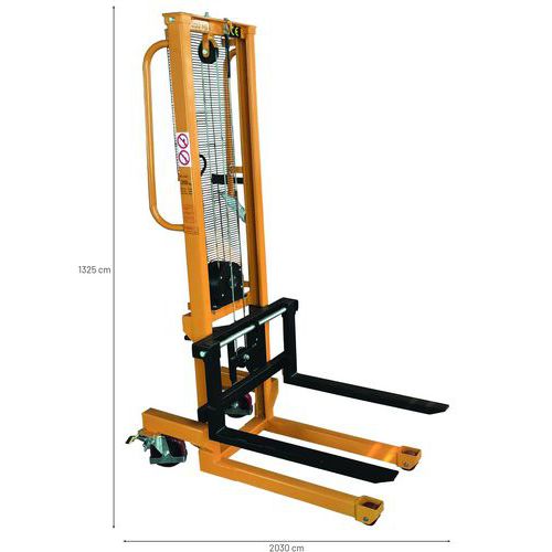| Productnaam | Handstapelaar, Max. belasting: 250 kg, Max. hefhoogte: 1560 mm, Totale lengte: 1325 mm, Min. hefhoogte: 90 mm |