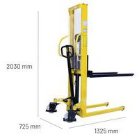 | Productnaam | Handstapelaar, Max. belasting: 500 kg, Max. hefhoogte: 1600 mm, Totale lengte: 1650 mm, Min. hefhoogte: 90 mm |