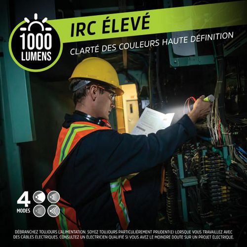 Led-technologie: deze led-zaklamp van 1000 lumen is voorzien van een hoge IRC voor een helderheid van de HD-kleuren, ideaal voor allerlei projecten.