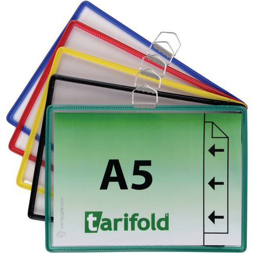 | Productnaam | Hangend displayframe A5 horizontaal, korte zijde, 5 assorti, Zelfklevend: nee, Materiaal: PVC |