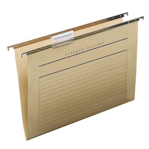 Metalen ophangbeugels. Hangmap met etikethouder.
