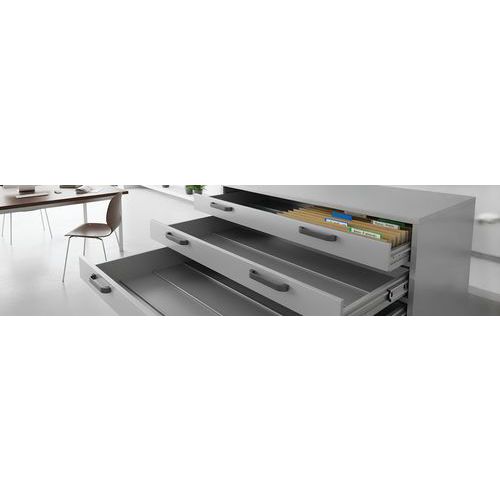 | Productnaam | Hangmappenrails, Materiaal: Staal, Lengtes: 80 cm, Kleur: Grijs, Recyclebare verpakking: Ja - 100% |