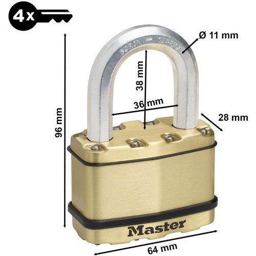 | Productnaam | Hangslot 38 mm weersbestendig Excell M15BEURDLF, Lengte: 47 mm, Aantal sleutels: 4, Beugel Ø: 11 mm |