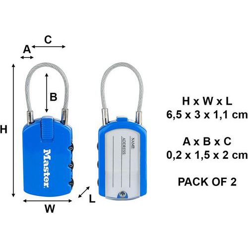 | Productnaam | Hangslot met adreslabel 10cm gekleurd 4684EUR, Beugel Ø: 2 mm, Aantal draaischijven: 3, Lengte: 60 mm |