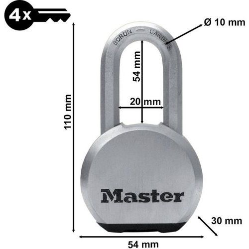 | Productnaam | Hangslot met hoge veiligheid rvs sleutel lange beugel, Lengte: 109 mm, Aantal sleutels: 4, Beugel Ø: 10 mm |