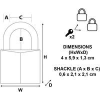 | Productnaam | Hangslot met sleutel aluminium 9140EURT, Lengte: 32 mm, Aantal sleutels: 2, Beugel Ø: 6 mm |